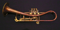 Ganschhornをすでにご存知の方も多いと思いますが、Mnozil BrassのThomas GanschとSchagerl社との共同開発から製作された楽器で、ロータリートランペットでもピストントランペット同様に左手でミュートの操作がしやすいように、ベルの独特なカーブが特徴的なB管トランペットです。